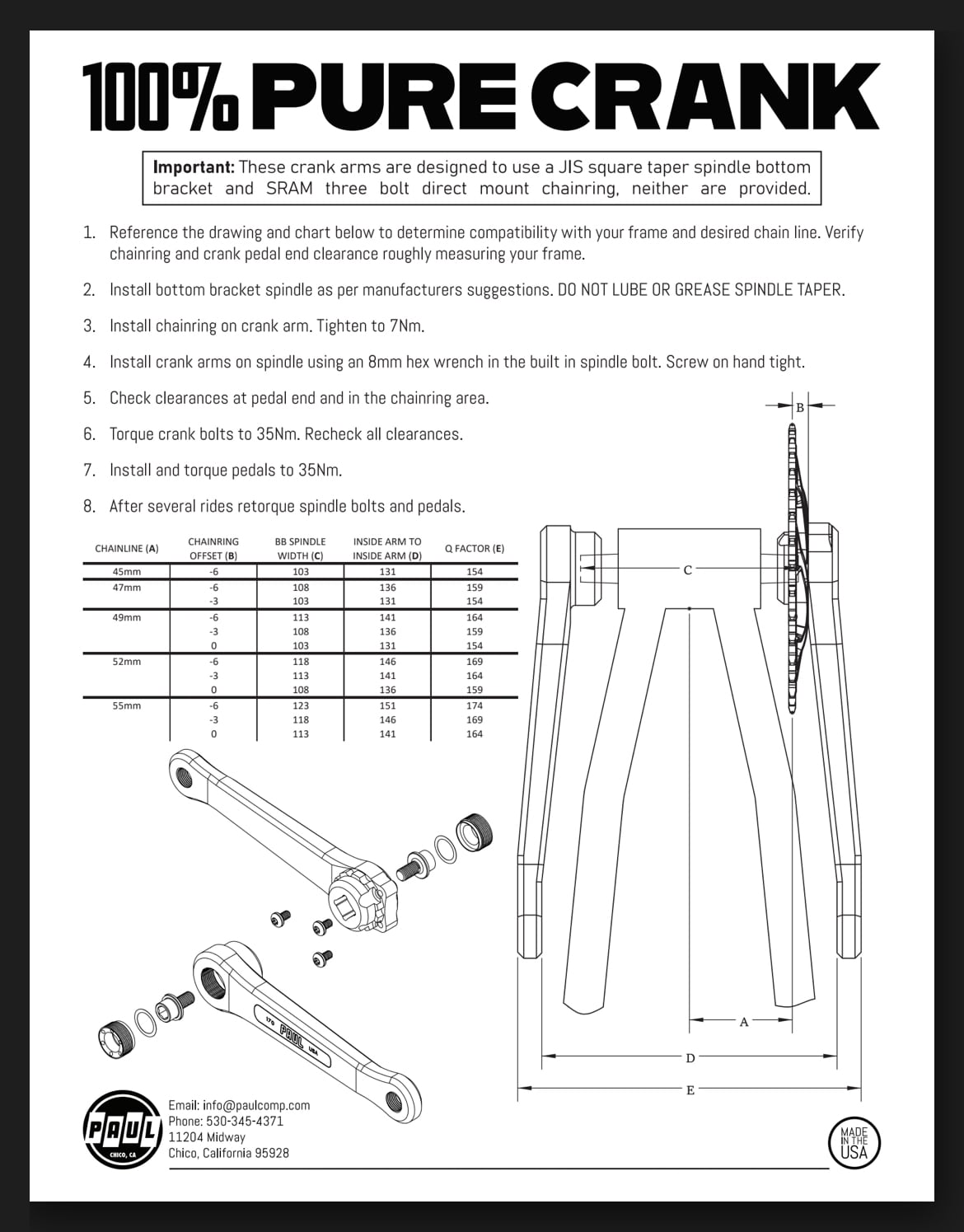 【New!!】PAUL Component ポール / 100% PURE PAUL CRANKS クランク